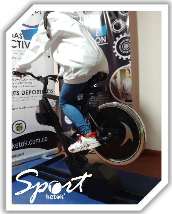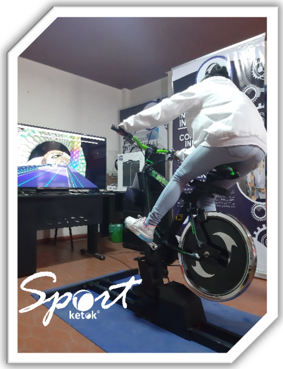Está desarrollado con las mismas características del simulador de bicicleta basico, pedaleo similar al que ofrecen las bicicletas, inclinación hacia atrás, diferentes rangos y clases de movimientos gracias al sistema de control del manubrio y al propio esfuerzo físico del usuario, adicionalmente se pueden conectar al computador como un control de videojuego generando experiencias interactivas de entretenimiento en ambientes deportivos y competitivos, para de esta manera realizar ejercicio de una manera entretenida e innovadora.